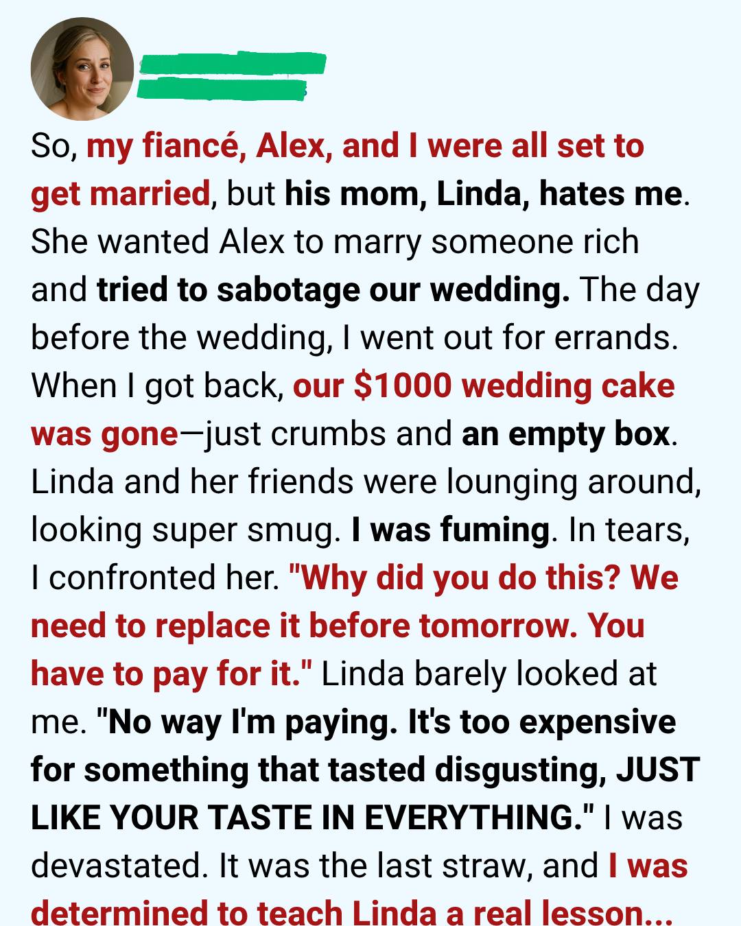 This was the final straw. If Linda wanted to sabotage our wedding? Fine.