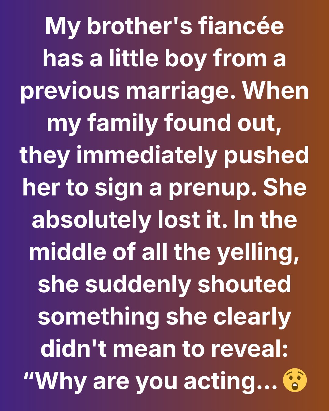 Now my future sister-in-law is angry at everyone — at my family for only caring about the child once they realized he was biologically “one of us,” and at my brother for not warning her about the prenup nonsense in advance, even though he knew it was coming. And me? I’m stuck in the middle, wondering if I messed up by agreeing with my family at first.