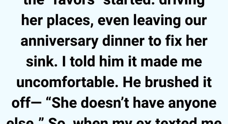 I told him it made me uncomfortable. He brushed it off, saying, “She doesn’t have anyone else.” I tried to let it go—until the night she called during our anniversary dinner about a leaking sink. And he left.