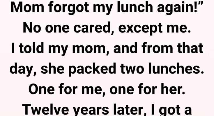 There was a girl in our class from a poor family. Every day, she’d laugh and say, “Oh, Mom forgot my lunch again!” No one cared, except me. I told my mom, and from that day, she packed two lunches.