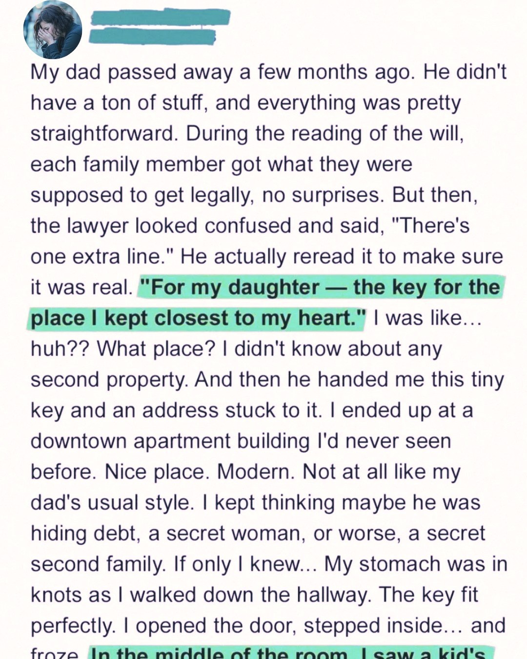 Beside it were my father’s words: “To my daughter — the key to the place I kept closest to my heart.”
