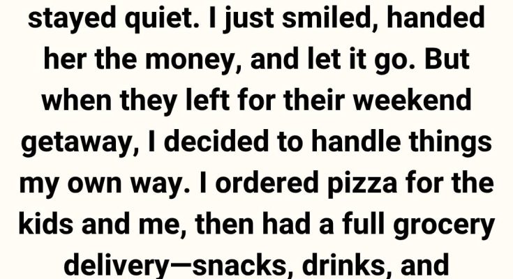But when they left for their weekend getaway, I decided to handle things my own way. That Friday night, I ordered pizza for the kids and me, then scheduled a full grocery delivery—snacks, drinks, and everything we could possibly want. By the time they returned Sunday evening, their fridge and pantry were overflowing with fresh, high-quality food, all paid for by me.