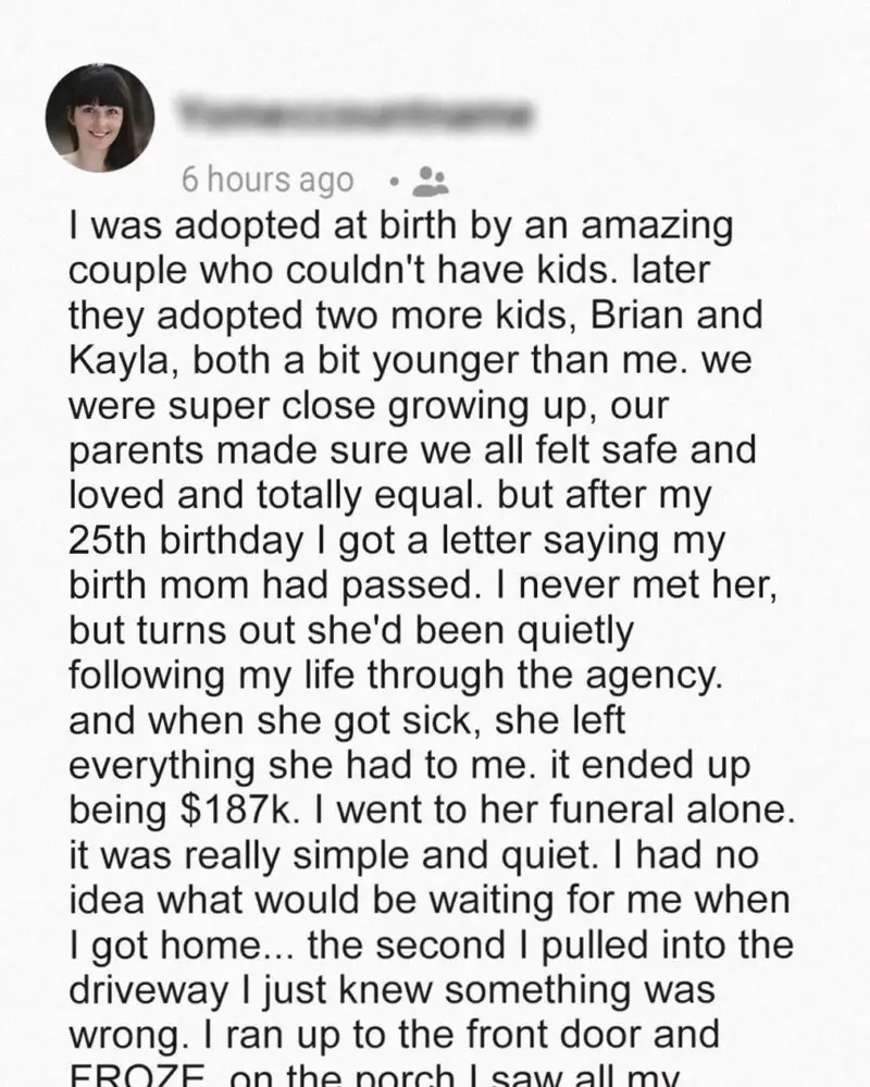 My Birth Mother, Whom I Never Met, Left Me Her Entire Estate ($187K) – but What Waited for Me at Home After the Funeral Left Me Speechless