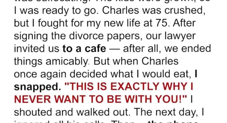 Our quarrels grew more frequent after that. Eventually, I asked for a divorce—and to my surprise, Charles didn’t try to stop me. Perhaps he knew that at our age, the emotional strain wasn’t good for either of us.