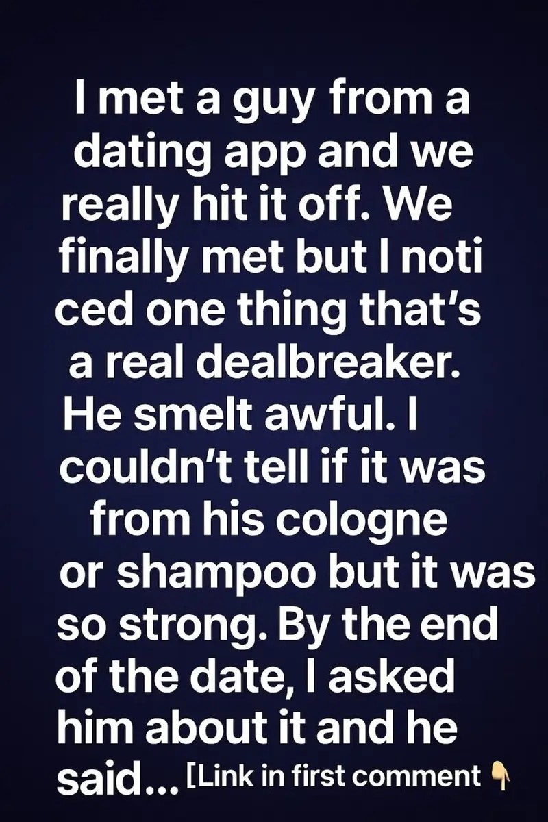 I kept trying to push the thought aside because everything else about him was pleasant. We laughed, shared stories, and genuinely enjoyed each other’s company. Still, the smell lingered in the back of my mind, almost distracting me from the conversation.By the end of the evening, I decided to be honest.
