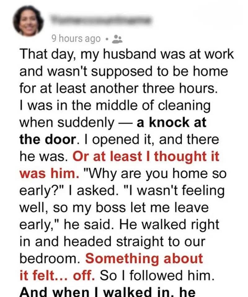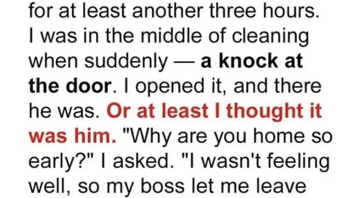 When Marissa opened the door, she expected to see her husband—same hoodie, same face—but something felt off. He didn’t greet her with a kiss. Didn’t use her nickname.