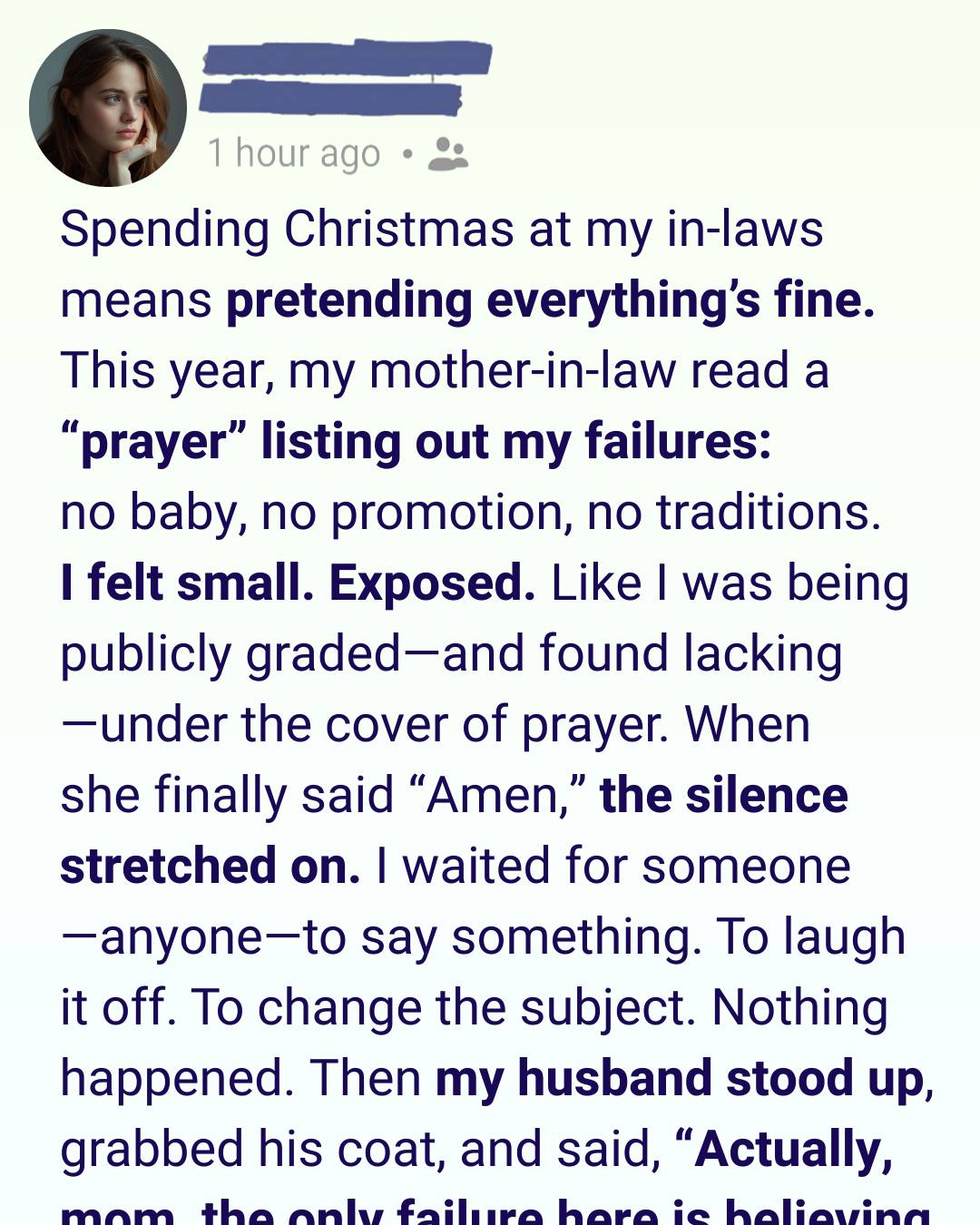 During Christmas Prayer, My Mother-in-Law Listed All My “Failures” — My Husband’s Reaction Shocked the Entire Family