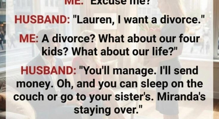 I’ll send money. Oh, and you can sleep on the couch or go to your sister’s. Miranda’s staying over.”That night, I packed what I could, gathered the kids, and walked out of the house I had built with love and effort for over a decade.