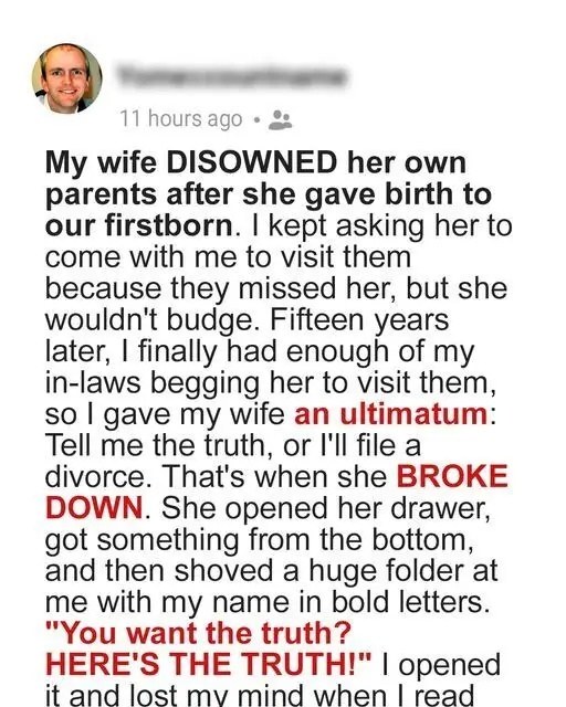 My Wife Cut Ties with Her Parents After Our Son Was Born — 15 Years Later, She Revealed the Real Reason