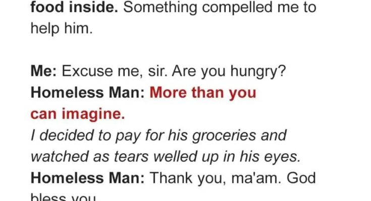 They believe that a small act of compassion can go a long way. But when I agreed to aid a starving homeless man one day, I was unprepared for the heartbreaking experience that occurred less than 24 hours later.