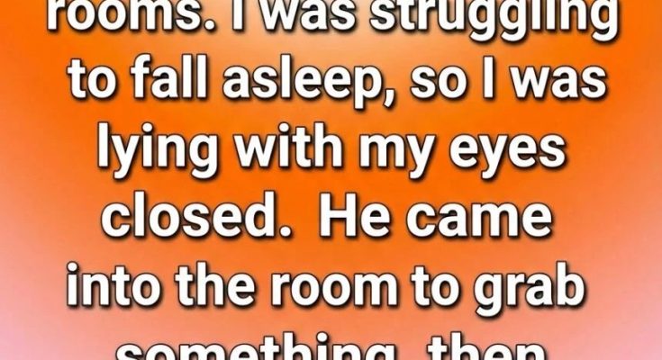 He stepped inside quietly to grab something from the dresser. I kept my eyes closed, pretending to sleep, unsure whether I wanted him to notice I was awake. Then he paused beside the bed.