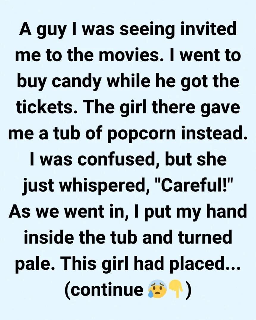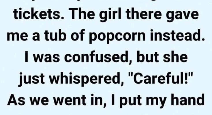 Her voice was barely audible over the chatter and hum of the popcorn machines, but the seriousness in her eyes made my stomach twist. Before I could ask what she meant, another customer stepped up, and the moment was gone. She slid the popcorn toward me and turned away.