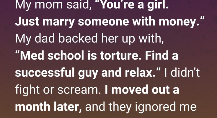 I ran into the kitchen, heart racing. “I got in,” I said, my voice trembling. “I got into med school.”