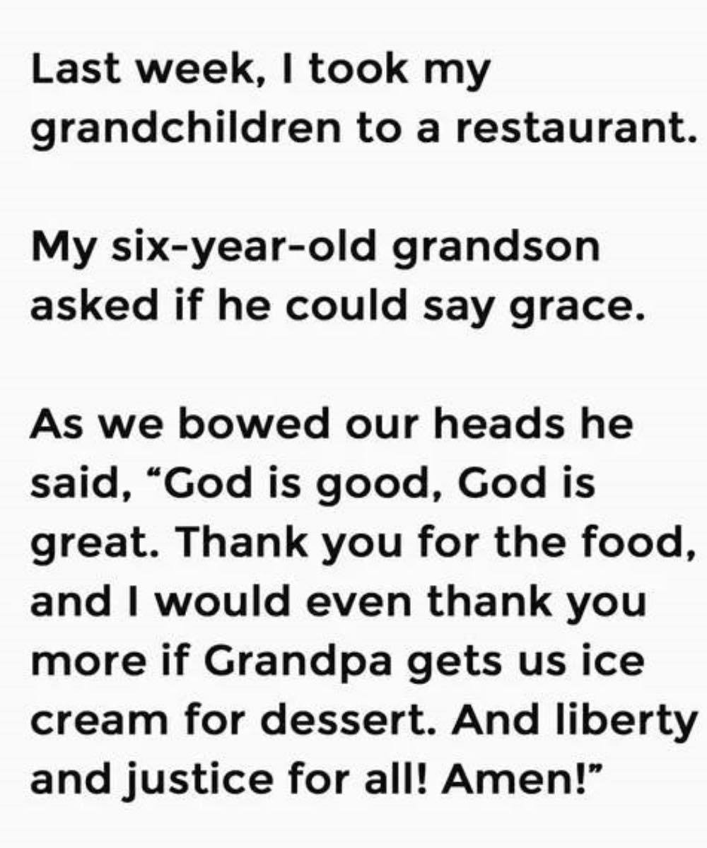 Before the food arrived, my six-year-old grandson looked up at me with bright eyes and asked politely, “Grandpa, can I say grace?”