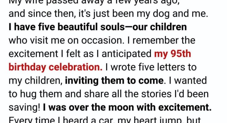 Phone calls when they remember. I don’t blame them. Life gets busy.I know that. But my ninety-fifth birthday felt different. It felt important.Weeks before the day arrived, I sat at my small wooden desk and wrote five letters—one for each child. My handwriting isn’t what it used to be, but I took my time. I told them how much it would mean to me if they could come.