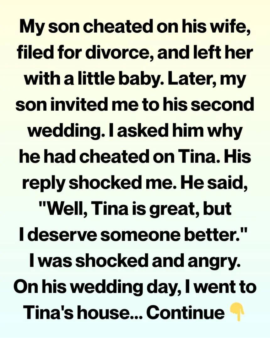 He had found someone new, someone he claimed was “a better fit.” Tina was left alone with a one-year-old, scraping by in a tiny rented room, working every spare moment just to keep going. I wasn’t prepared for what came next. My son called again—this time to invite us to his wedding.