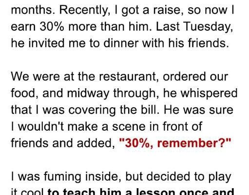 But it wasn’t ours. It was mine. My new salary, meant for our future, was steadily being siphoned off to pay for his social life. My bank account, which had swelled with that first post-raise paycheck, was slowly starting to dwindle. I started tracking it. In a month, I had spent nearly a thousand dollars on his friends’ dinners. A thousand dollars. On people who barely acknowledged me, who just nodded politely as I pulled out my card.