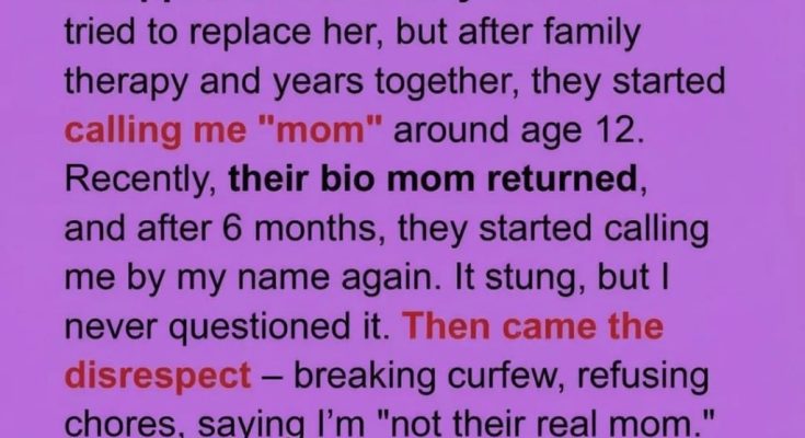“Mom” disappeared, replaced by my first name. Then came the distance: broken curfews, refusal to help at home, sharp words meant to wound. They told me I wasn’t their real parent anymore.