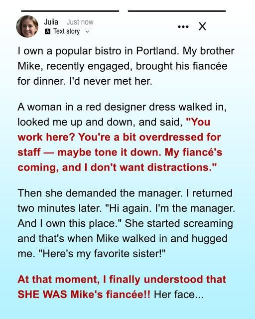 A woman with a bad attitude walked into my restaurant and told me—yes, me—to change my hairstyle and my clothes because I was “too distracting” for her fiancé. She had no idea I owned the place. And I had no idea she was about to become part of my family.
