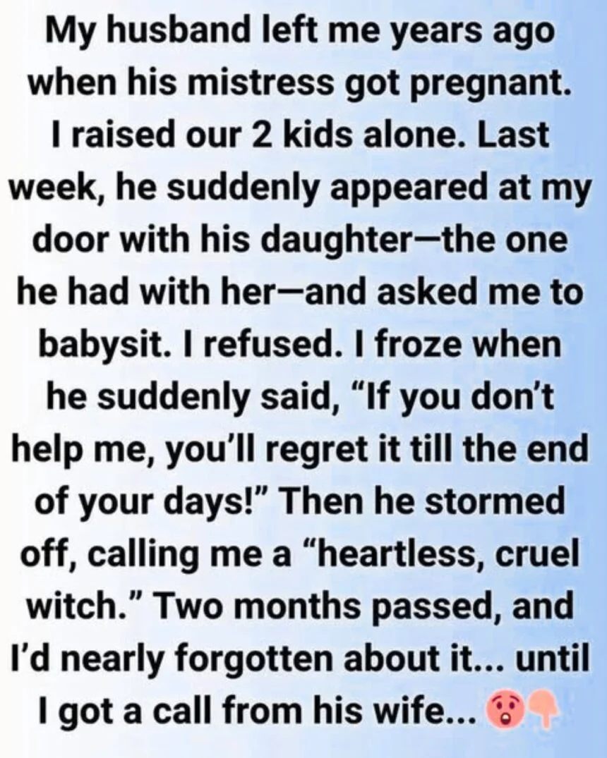 Beside him stood a little girl—his daughter, the child he had with the woman he left me for. Without preamble, he asked if I could babysit her. I didn’t hesitate long.