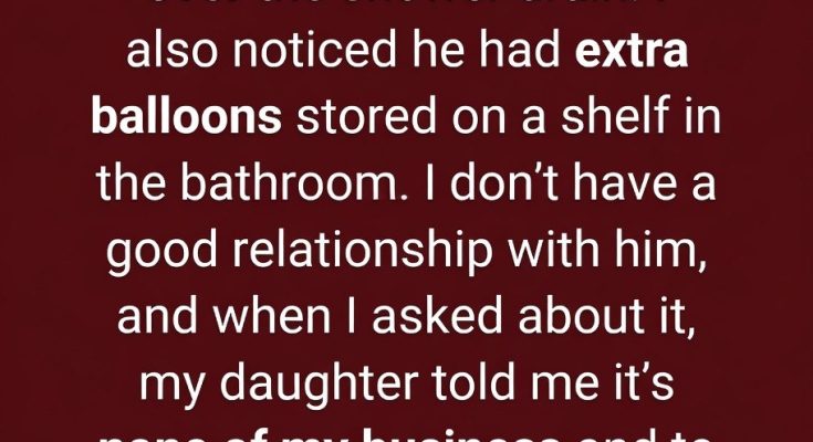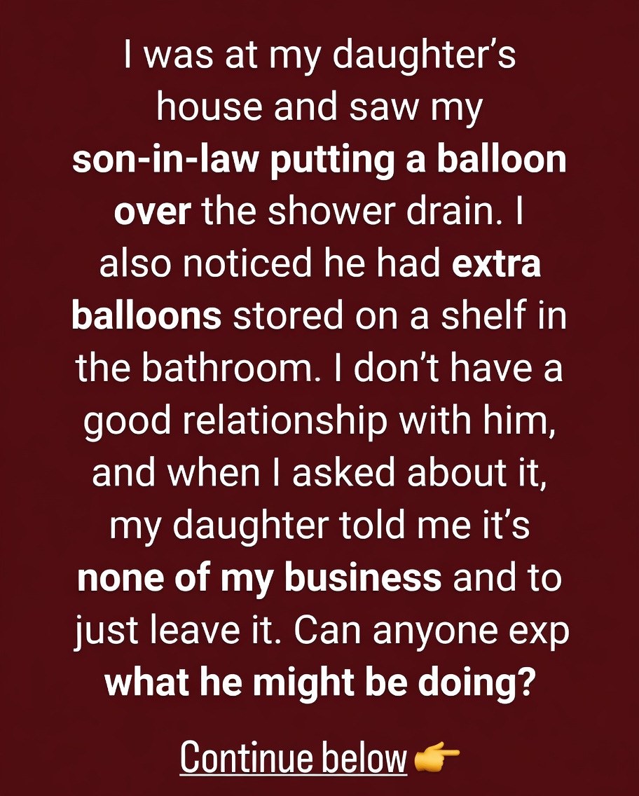 I was at my daughter’s house and saw my son-in-law putting a balloon over the shower drain. I also noticed he had extra balloons stored on a shelf in the bathroom. I don’t have a good relationship with him, and when I asked about it, my daughter told me it’s none of my business and to just leave it.