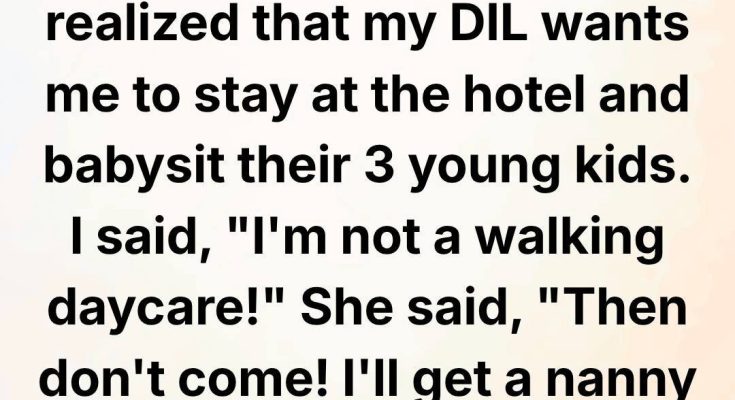 I thought it would be a chance to make memories together, enjoy somewhere new, and feel part of their lives again. But it didn’t take long for me to realize that my daughter-in-law had something very different in mind. She expected me to stay at the hotel the entire time and babysit their three young children—ages 7, 5, and 2.
