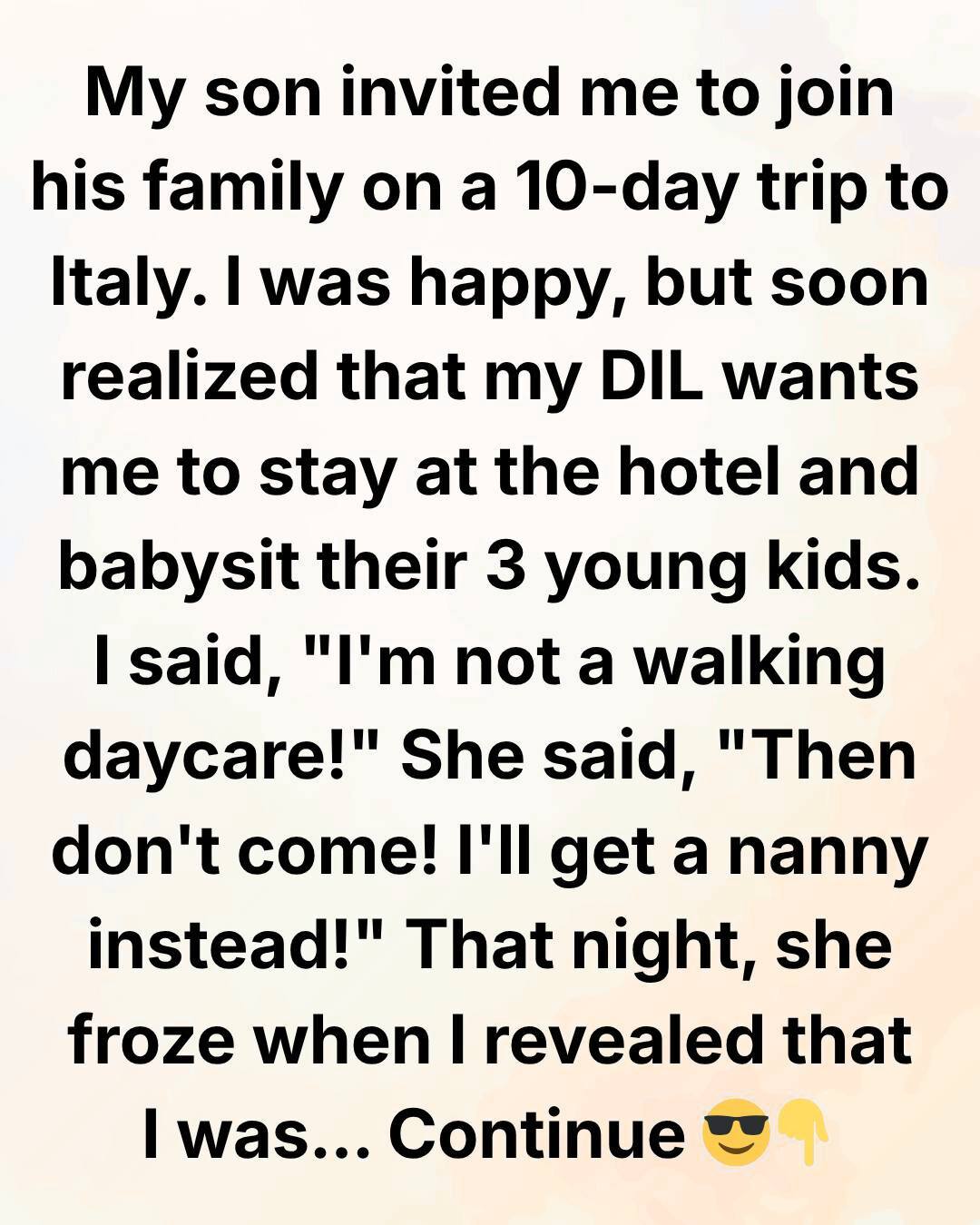 I simply said nothing and walked away. Now, I fully intend to go on this trip, enjoy Italy on my own terms, and keep a respectful distance from them. I don’t want drama—I just want peace.