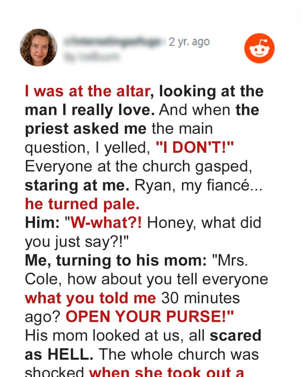 “No,” I said. “I’m going to walk down that aisle. I’m going to walk to the man who has been unfaithful to me. And when the time comes for our vows, I’ll break it off then.”