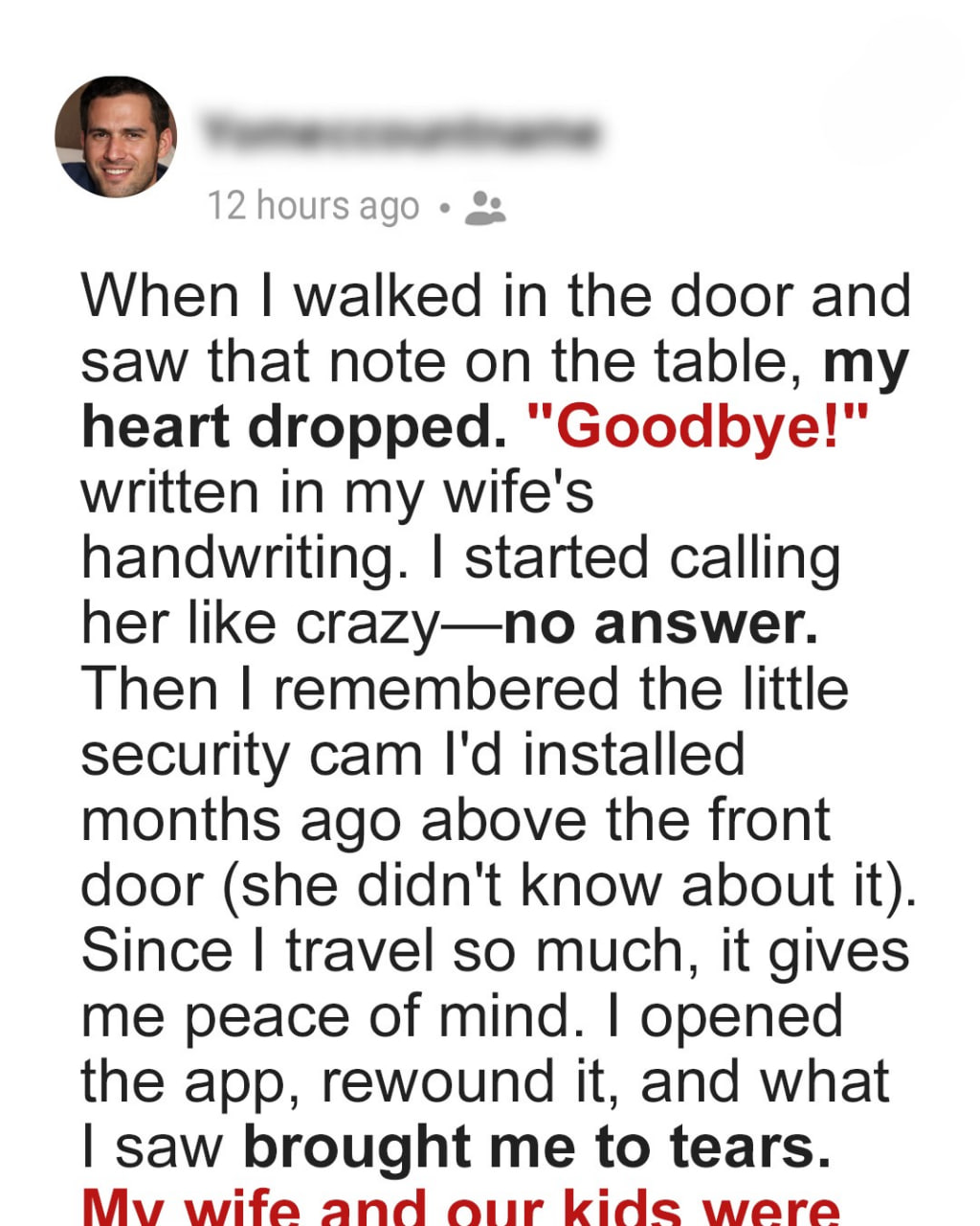 When I got home that day, I was excited to see my children and wife, but I was shocked by what I found! What I saw on the home security camera had me grabbing my keys as I worked to unravel why my family had vanished!