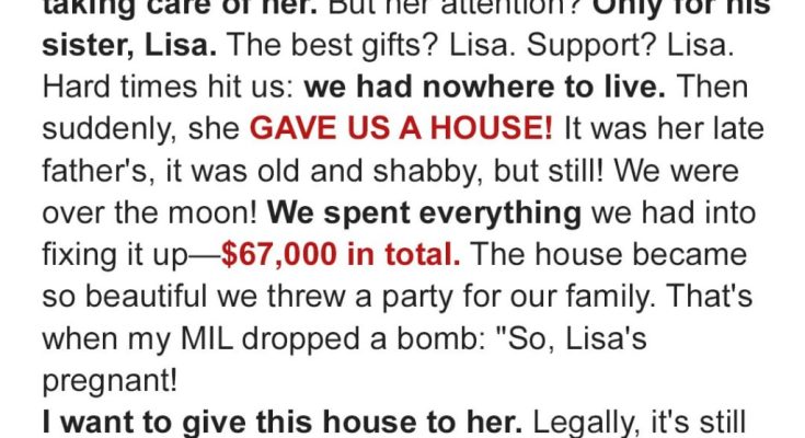 When my mother-in-law gave us her old house, I thought she was finally showing kindness. My husband and I spent months turning it into a home, putting in all our savings and hard work. But just when we were ready to enjoy it, she came to me with a demand that left me speechless.