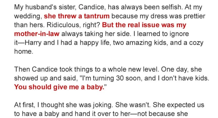 My sister-in-law always felt entitled to whatever she wanted, but nothing prepared me for her most outrageous demand yet—she wanted me to have a baby just so she could keep it as a gift. When she refused to take no for an answer, I decided to teach her a lesson she would never forget.Worse yet, she claimed my dress was prettier than hers. As if my wedding was supposed to revolve around her!