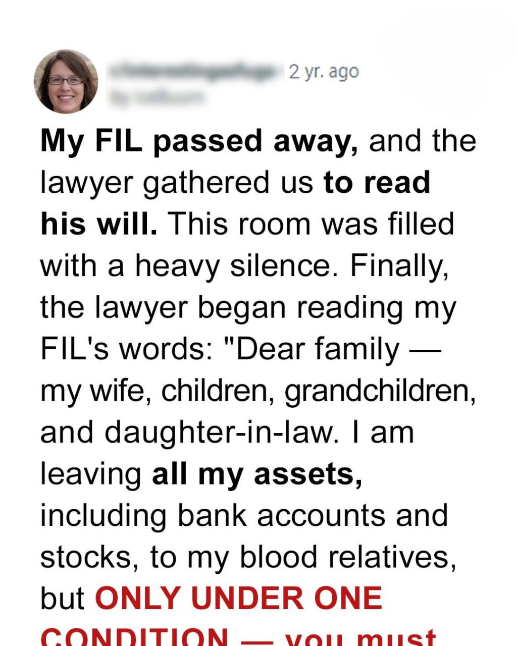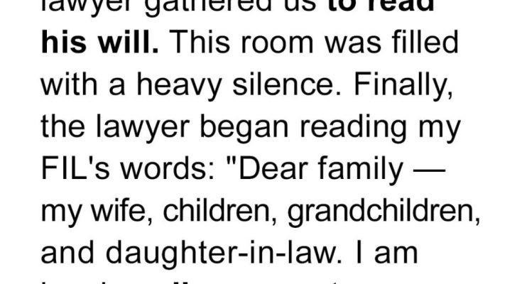 My FIL, Leonard, had always been a man of mysteries. Even during family gatherings, he carried an air of secrecy. When he passed, it felt like the end of an era. But it seemed he had one final surprise waiting for us.The lawyer’s call made my stomach tighten.“The time has come to announce the terms of your father-in-law’s will.”