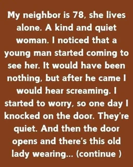 My neighbor is 78 years old and lives alone. A kind and peaceful woman.
