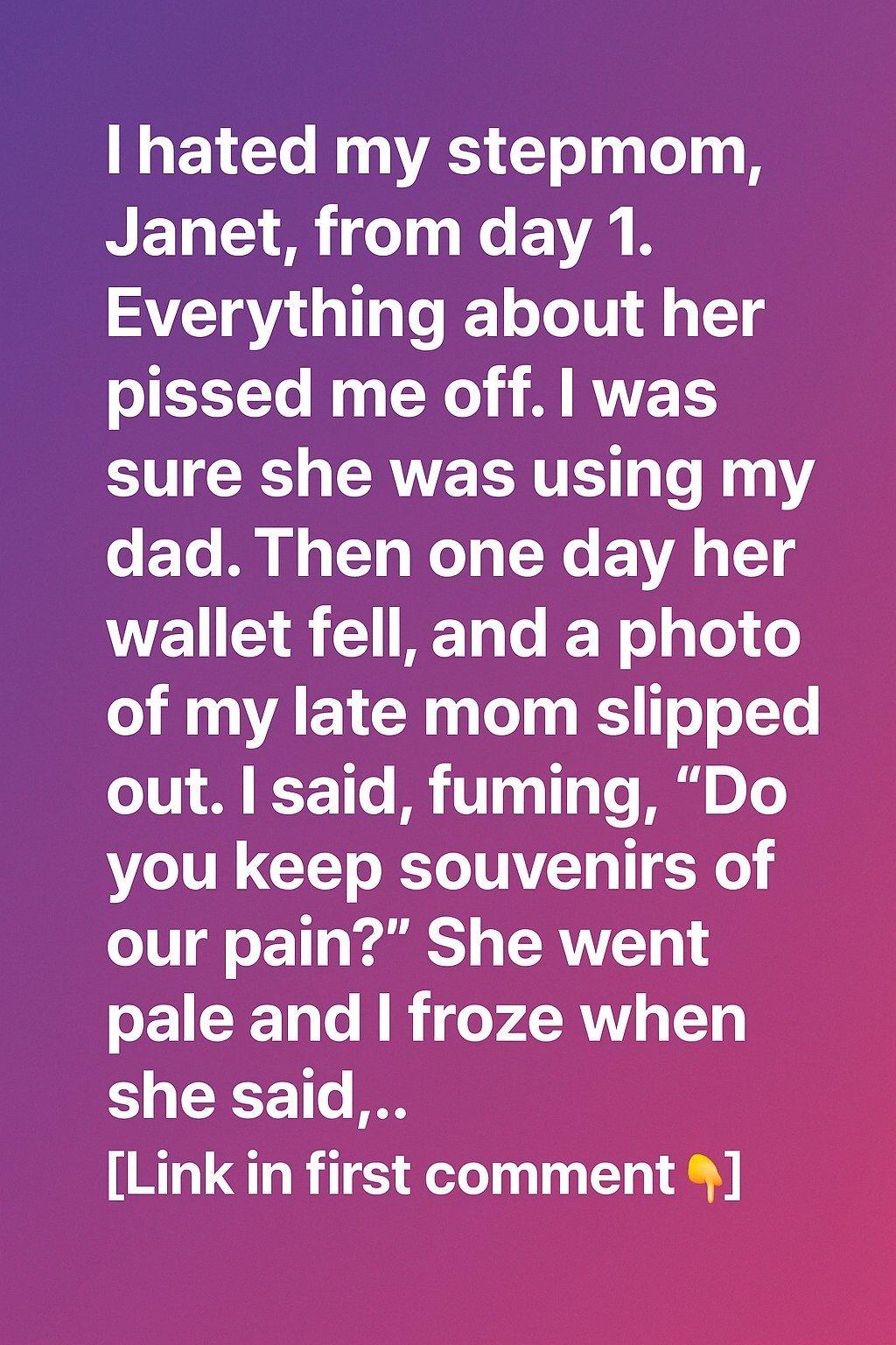 I hated my stepmom, Janet, from day one. Everything about her bothered me. I was sure she was only with my dad for his money.