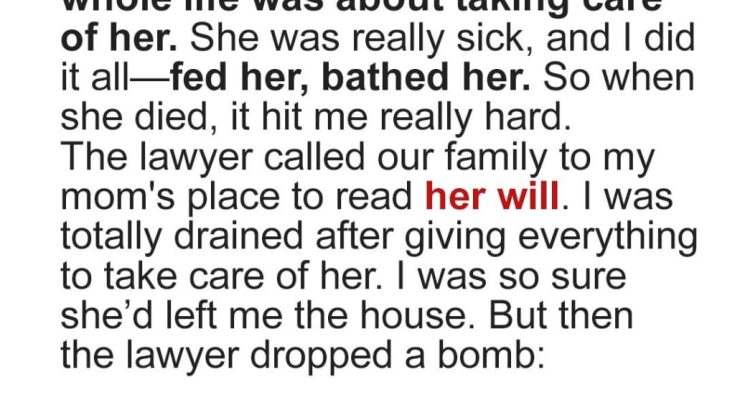 “You didn’t do anything to deserve it!” I snapped, my emotions spilling over. “I cared for her. I fed her, bathed her, paid her bills. I was there when she couldn’t walk. And still, she gave it to you because you were her favorite!”