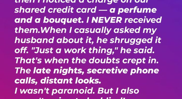 “Hey, did you buy perfume and flowers recently? There’s a charge on our statement,” I said, watching his face carefully.