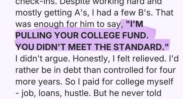 What I felt instead was relief. Deep down, I hadn’t wanted to enter college with my father still controlling every detail. Four more years of spreadsheets and guilt-trips?
