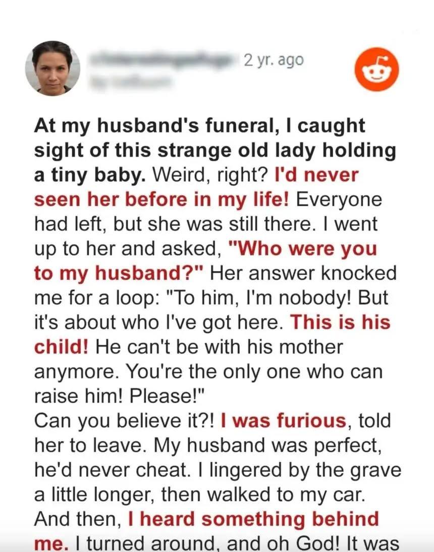 Nancy’s life is turned upside down at her husband’s funeral when she encounters an older woman holding a baby.