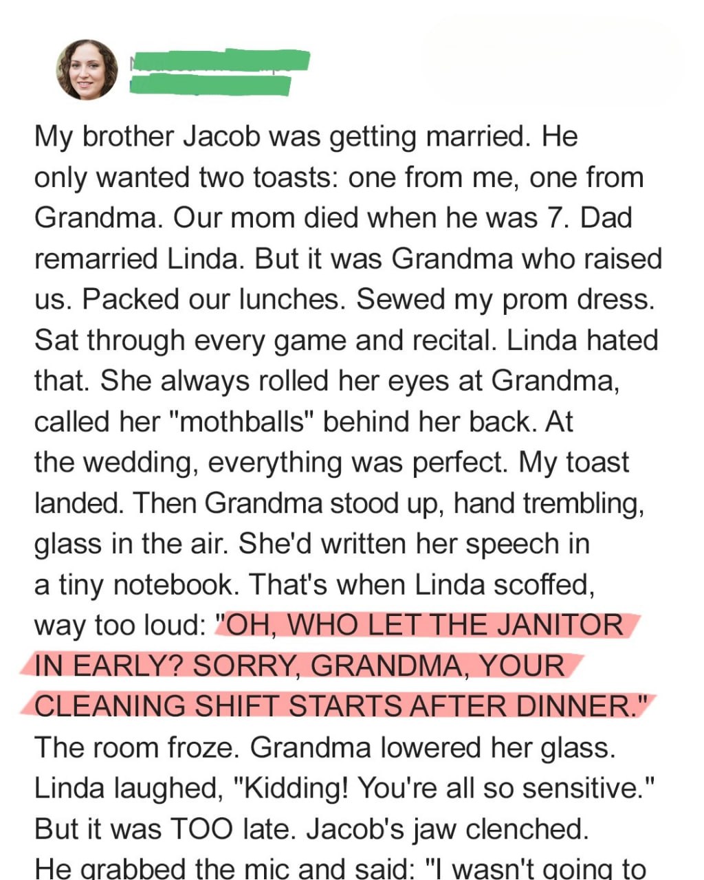 Grandma stood straighter, took the mic, and turned to Linda. “Don’t worry, dear. I’ll keep it short, since I’m ‘on the clock.’”