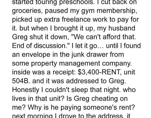 It was an account statement. Not a joint one. Not his usual one. And the balance… My breath hitched. My eyes darted across the numbers, then back again. I blinked, rubbed my eyes. No. It couldn’t be right. THE BALANCE WAS STAGGERING. MORE THAN ENOUGH FOR PRESCHOOL. ENOUGH FOR YEARS OF PRESCHOOL. ENOUGH FOR A DOWN PAYMENT ON A HOUSE.