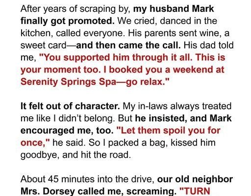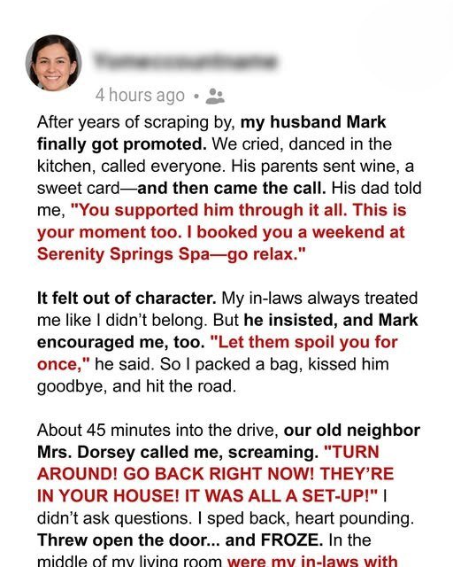 I spun the car around, tires squealing, and sped back the way I came. Every mile felt like an eternity. My mind raced, trying to put the pieces together. Was it about money? Was my husband cheating? But why would my father-in-law be involved? No, it has to be something worse than a simple affair. His tone, the neighbor’s panic… it was something dark, something orchestrated.
