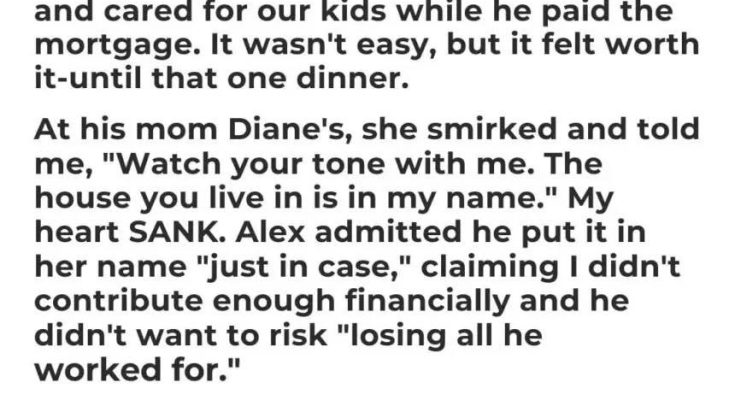 Over the next ten years, Alex worked tirelessly to pay off the mortgage on the house he claimed was “ours.” He often bragged about his accomplishments, conveniently forgetting how much of the emotional and physical load I carried in the background.