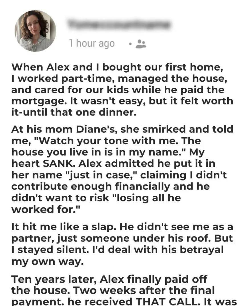 My Husband Secretly Put Our House in His Mom’s Name – Ten Years Later, He Received an Unexpected Call