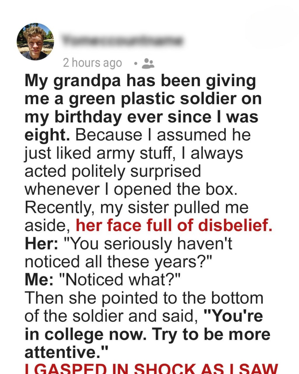 Grandpa Gave Me a Green Plastic Soldier on My Birthday for Years — One Day I Finally Understood Why, and I Was Utterly Stunned
