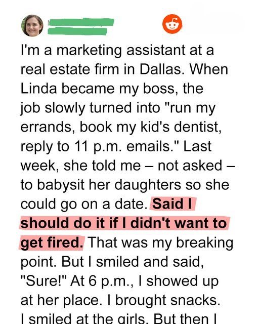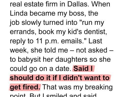 My eyes scanned the next line, and my blood ran cold.“I need you to babysit the kids tonight. And tomorrow. And probably the whole week. Or, well, let’s just say this isn’t negotiable if you want to stay on my team.”Babysit? ME? This has to be a joke. My degree wasn’t for this. My experience wasn’t for this. I was a manager, handling complex projects, not changing diapers and making macaroni and cheese. She treated me like her personal assistant, her errand girl, anything but a respected colleague. The audacity. The sheer, unmitigated gall.