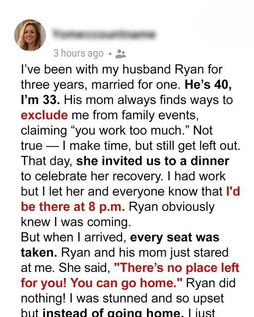 “Why wasn’t I invited?” I’d ask my husband, my voice small, trembling with a hurt I tried desperately to hide. He’d shrug, a familiar, infuriating gesture. “Oh, I guess Mom just forgot to tell you directly. You know how she is. Just assume you’re always welcome.” But I wasn’t. And he knew it. He saw the cold shoulder, the veiled snubs, the way conversations died when I entered the room. Yet, he never, not once, stood up for me. Never once did he tell his mother to include his wife. It was a silence that screamed louder than any argument. It was a betrayal by omission.