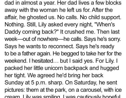 It was a text out of the blue. After three years of silence, three years of birthdays missed, school plays ignored, and a little girl asking, “Why doesn’t he want to see me, Mommy?” – it was just a text. “I want to see her. Our daughter. I want to be a father again.”