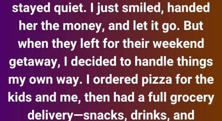 But when they left for their weekend getaway, I decided to handle things my own way. That Friday night, I ordered pizza for the kids and me, then scheduled a full grocery delivery—snacks, drinks, and everything we could possibly want. By the time they returned Sunday evening, their fridge and pantry were overflowing with fresh, high-quality food, all paid for by me.