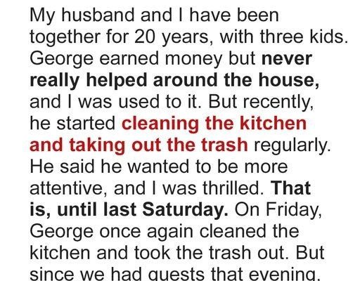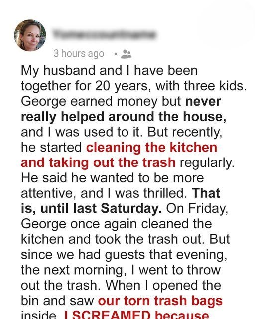 “Did you…?” I started, as he walked in, yawning. He just smiled, kissed my forehead. “Morning, love.” He poured his coffee, completely oblivious to my stunned silence. This wasn’t a one-off. It became a routine. Every single morning. The kitchen, immaculate. The trash, gone. Sometimes, I’d even find a load of laundry started.