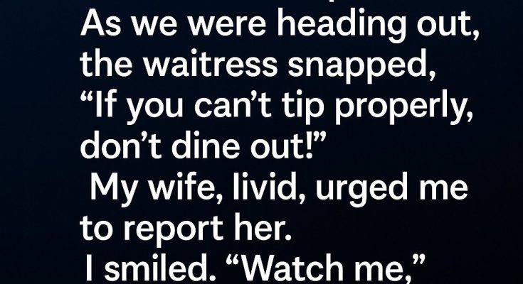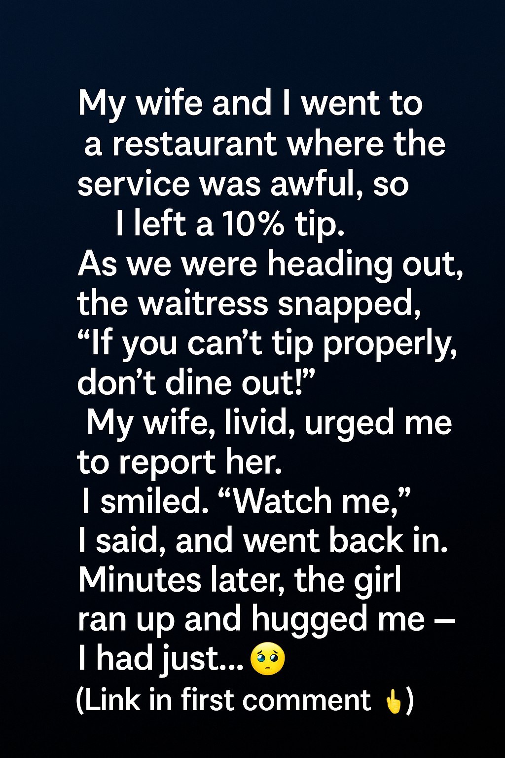 By the time we finished our meal, I left a modest 10% tip, thinking nothing more of it. But as we headed for the door, the waitress snapped, “If you can’t tip properly, don’t dine out!” Her words sliced through the air, leaving my wife furious and urging me to report her immediately. But something in the waitress’s voice—a mix of exhaustion and frustration—made me pause.